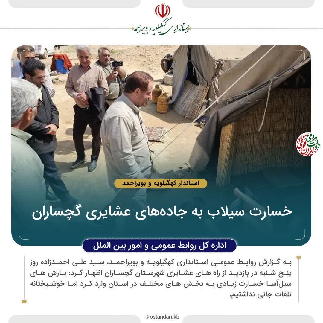 استاندار کهگیلویه و بویراحمد گفت: جاده های عشایری شهرستان گچساران در بارش های سیل آسای اخیر دچار خسارت شدند.